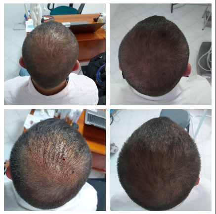 LEVE: El paciente presenta menos de ocho (8) meses de evolución, sin historial hereditario, folículo piloso sin tendencia a la atrofia, sin exceso de grasa y sin excavación. Presenta tres (3) cabellos por folículo piloso.
